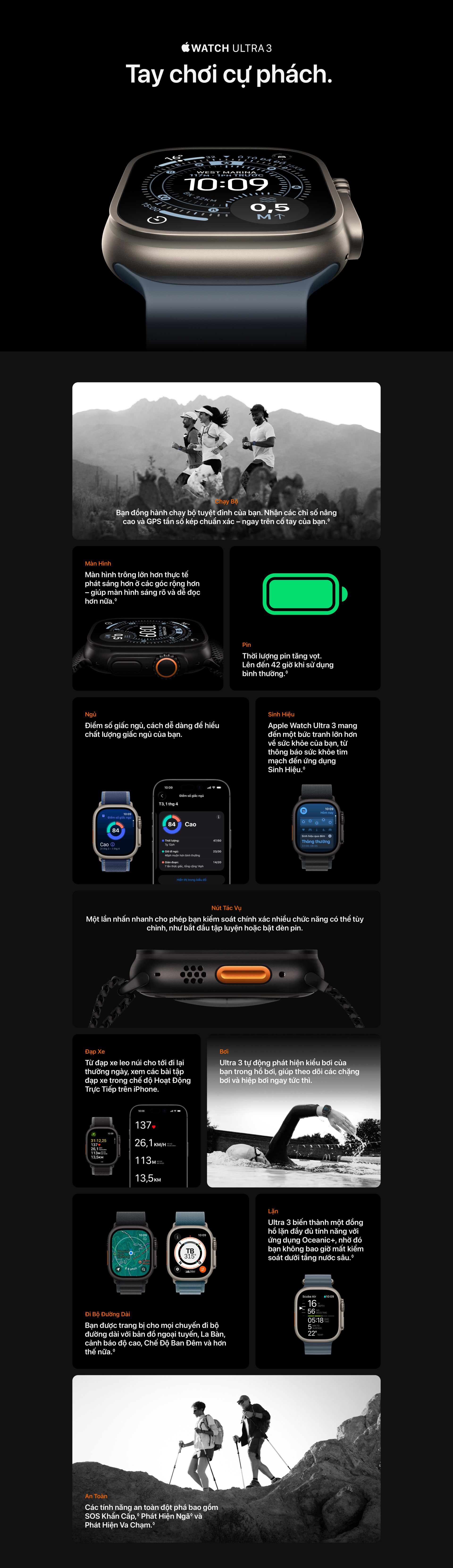Apple Watch Ultra 3 (GPS + Cellular) 49mm Natural Titanium Case with Ocean Band Mới - Apple Chính Hãng