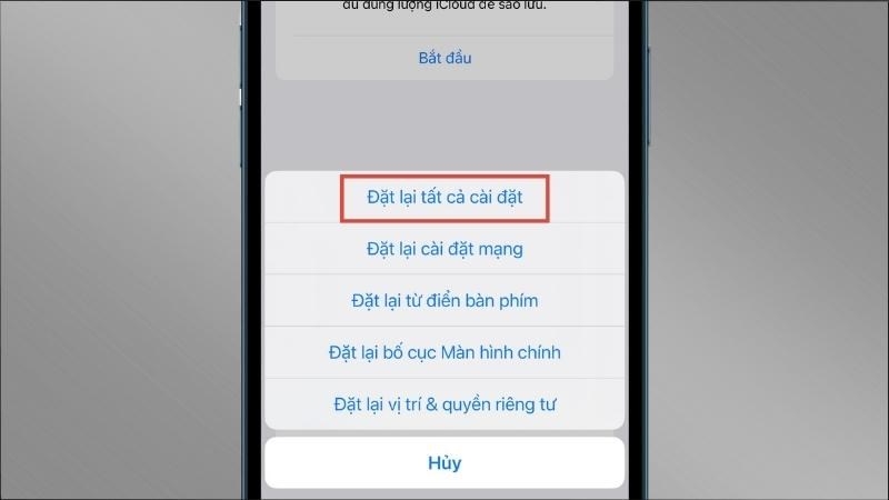 Bước 2: Bấm chọn Đặt lại tất cả cài đặt.