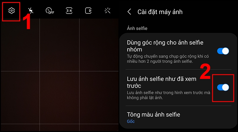 Trong giao diện cài đặt chính của ứng dụng Camera, hãy chọn biểu tượng hình răng cưa và chọn "Lưu ảnh selfie như đã xem trước". Vậy là thành công.
