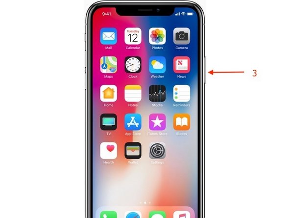 - Cuối cùng, nhấn và giữ nút sườn (3) cho đến khi logo Apple xuất hiện, sau đó thả ra.