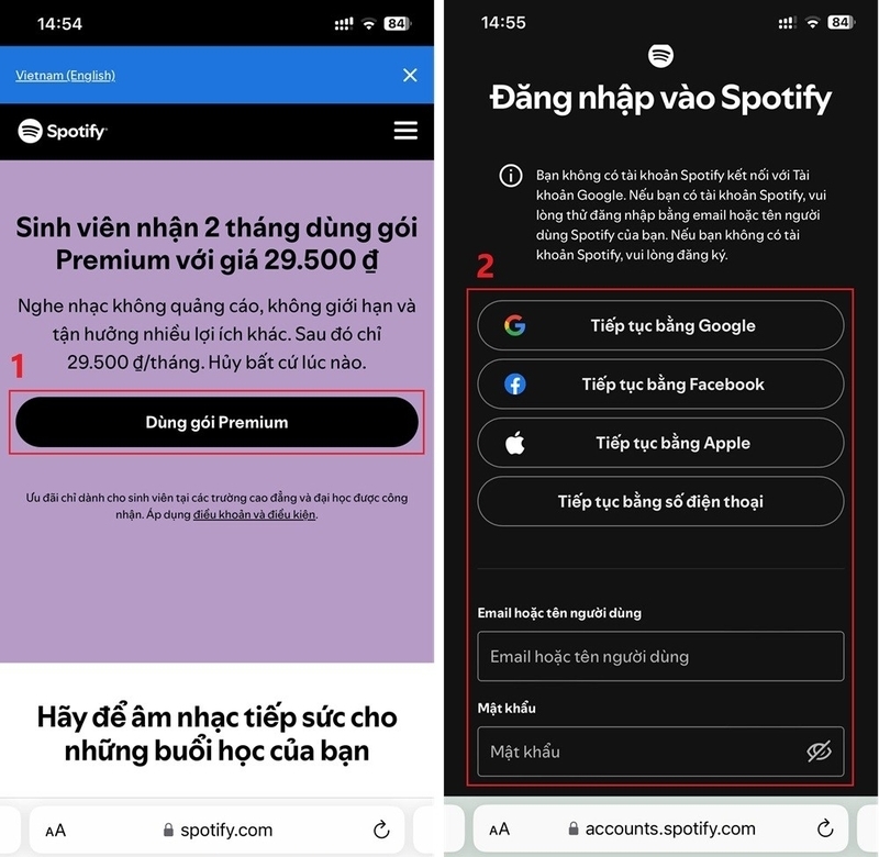 Dưới đây là quy trình đăng ký gói Spotify Premium Student: