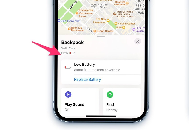 Một trong những ưu điểm lớn khi sử dụng AirTag là thiết bị sẽ thông báo khi pin yếu. Thông qua iPhone, bạn có thể kiểm tra tình trạng pin dễ dàng.